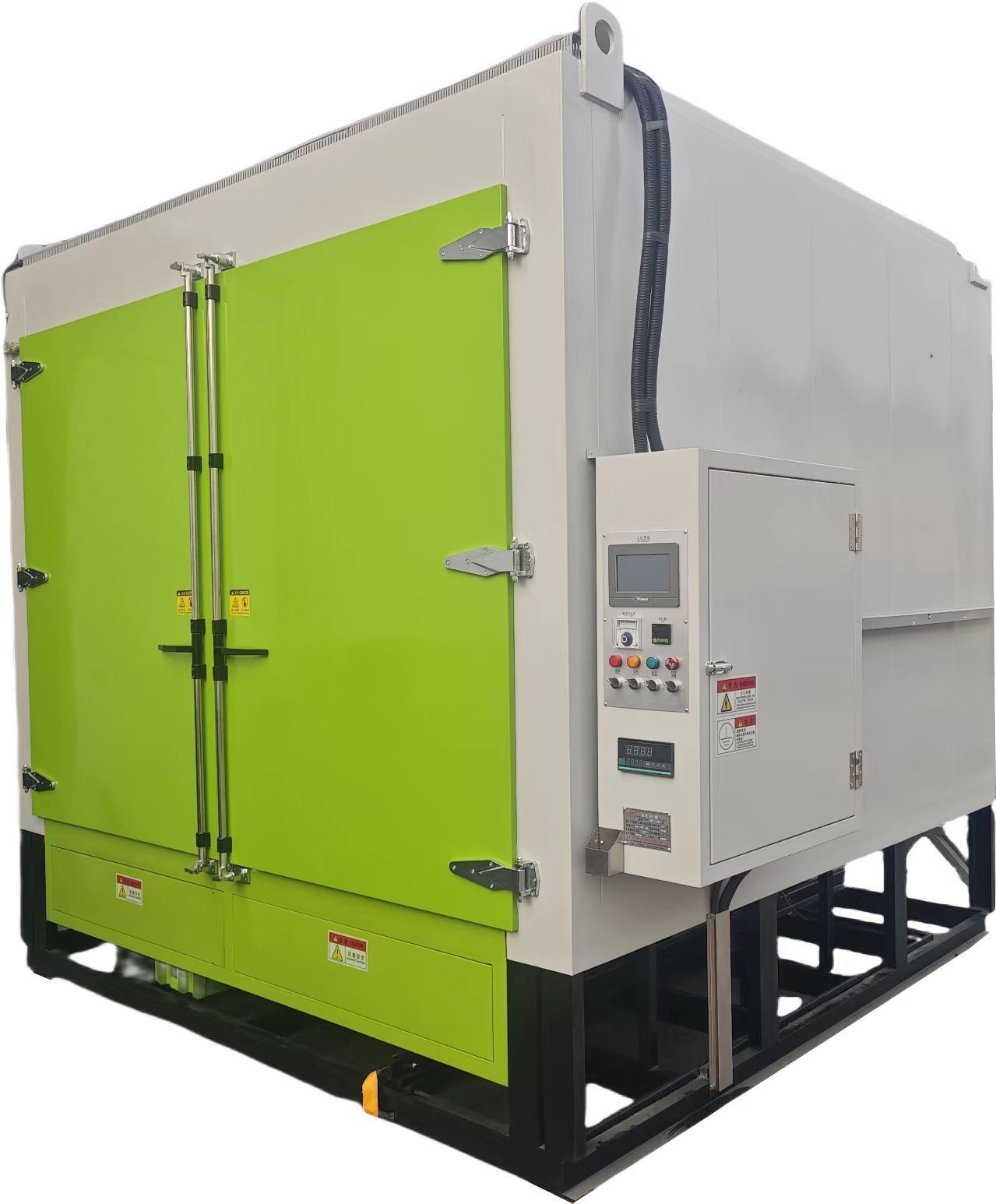 | 加热功率: | 180KW/72支不锈钢加热管 | 鼓风功率: | 1100W/380V*10台(定制耐高温长轴电机) |